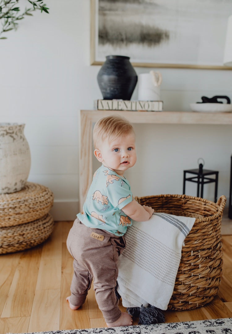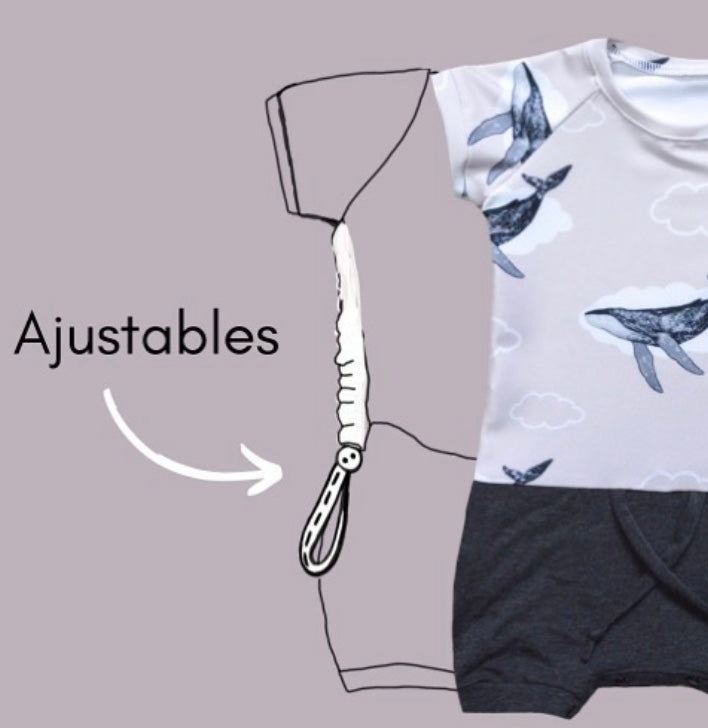 Complètement ajustable : Un système ingénieux d’élastique à boutonnière de chaque côté permet d’ajuster parfaitement à la longueur de son corps et de grandir avec lui. On replie également les manches et les pantalons aux chevilles au besoin pour un fit parfait.